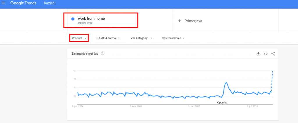 Spodaj so predstavljeni trendi zanimanja za delo od doma v Evropski uniji in nekaterih ostalih državah